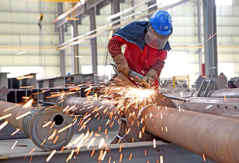 3月24日,大通工業(yè)園內(nèi),中能建建筑集團(tuán)淮南至精鋼結(jié)構(gòu)分公司職工加工鋼結(jié)構(gòu)產(chǎn)品。一季度是全年經(jīng)濟(jì)的風(fēng)向標(biāo),各企業(yè)紛紛開(kāi)足馬力趕訂單、忙生產(chǎn)。(記者 陳 彬 攝)