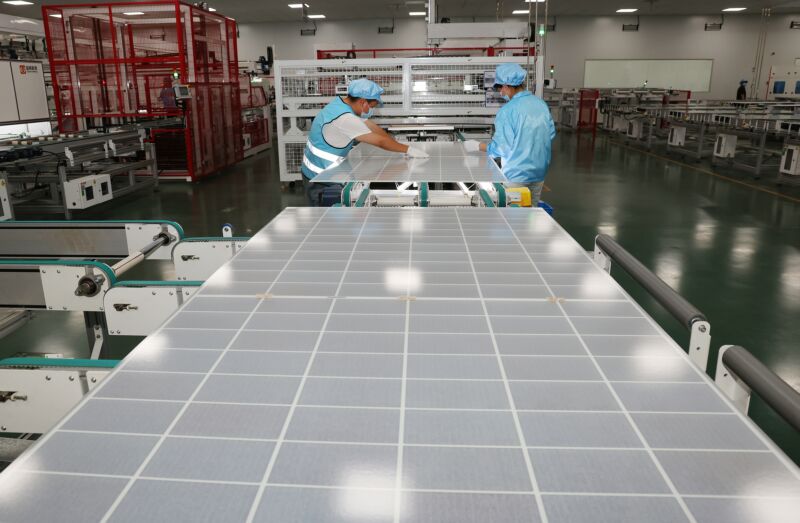 國晟科技(鳳臺)異質(zhì)結(jié)雙碳產(chǎn)業(yè)園主營異質(zhì)結(jié)高效電池、高分子邊框、大尺寸高效異質(zhì)結(jié)組件等。擁有國內(nèi)技術(shù)先進(jìn)、效率高兼容性強(qiáng)的GW級異質(zhì)結(jié)組件生產(chǎn)線,產(chǎn)品暢銷海內(nèi)外。園內(nèi)安徽乾景宇辰公司2024年榮獲兩項(xiàng)發(fā)明專利,15項(xiàng)實(shí)用新型技術(shù)。其研發(fā)量產(chǎn)的無應(yīng)力新型互聯(lián)異質(zhì)結(jié)組件,不僅有效提升了組件轉(zhuǎn)換效率,更是大幅降低了材料成本。圖為園區(qū)內(nèi)企業(yè)車間生產(chǎn)場景。