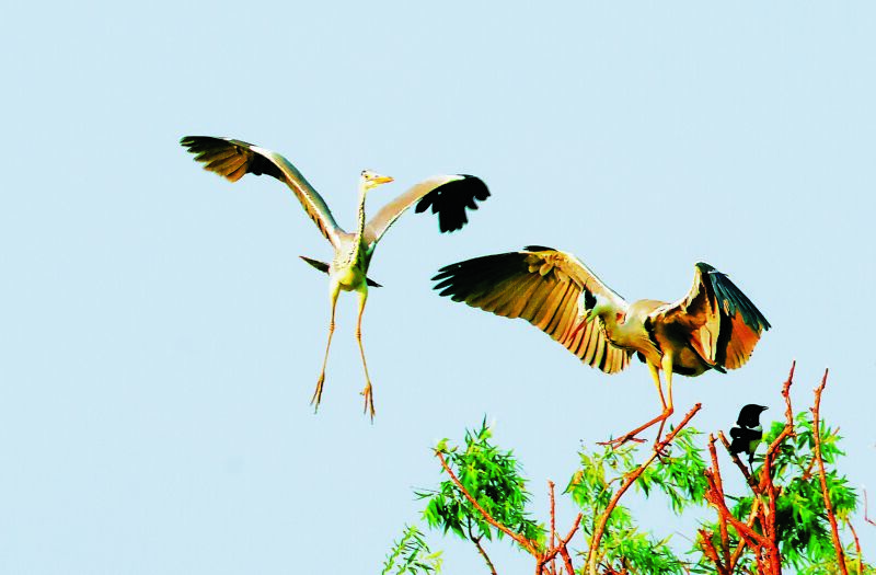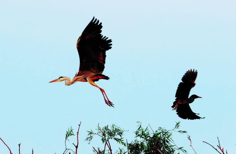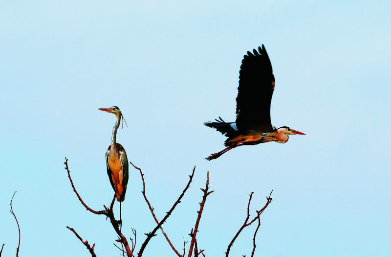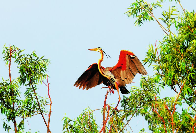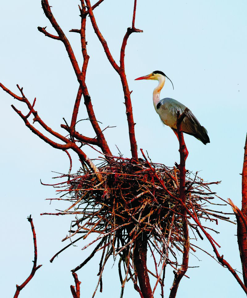 初夏時節(jié),焦崗湖國家濕地公園內,水上森林化作生機盎然的“鷺鳥天堂”。成千上萬只白鷺、蒼鷺與夜鷺在枝杈間筑巢安家、繁衍生息,它們或佇立枝頭梳理羽毛,或輕盈掠過水面覓食,雪羽翻飛時宛若枝頭綻開的流動花海,每一個動作都充滿了靈動之美。成年鷺鳥銜著食物掠過翡翠色湖面,雛鳥在巢中探出毛絨絨的腦袋發(fā)出清脆鳴叫,林間回蕩著翅膀拍打的撲簌聲,仿佛奏響一場盛大的自然交響樂。