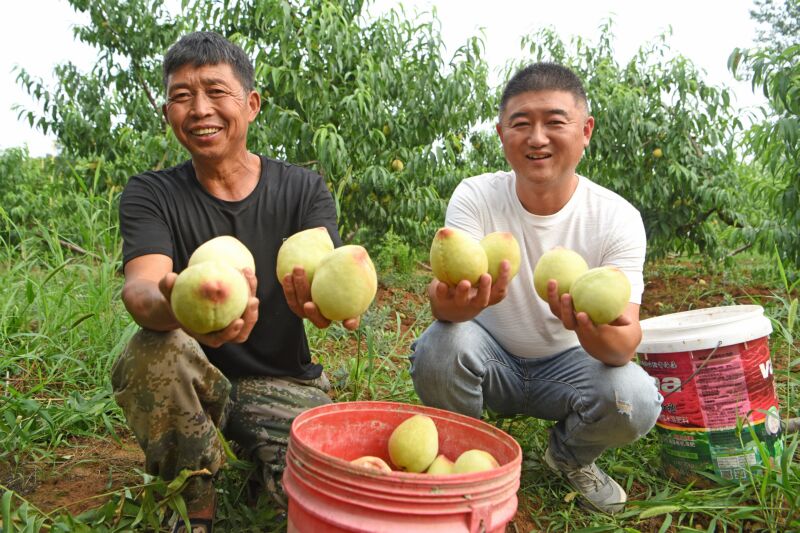 時值芒種,八公山區(qū)八公山脈各類果樹結滿豐收的果實,當?shù)貙⑻厣N植與鄉(xiāng)村旅游有效結合,發(fā)展觀光旅游、餐飲民宿、休閑采摘等項目,激活鄉(xiāng)村發(fā)展活力,助力果農(nóng)增收致富。圖為6月3日,八公山區(qū)山王鎮(zhèn)南塘村果農(nóng)采摘豐收的鮮桃。