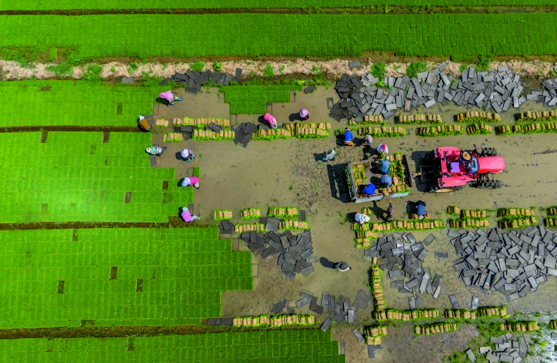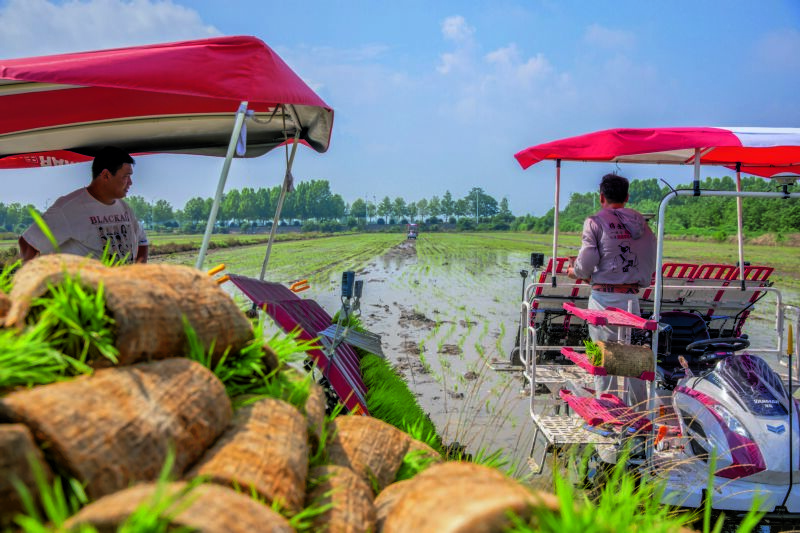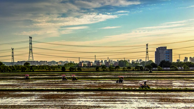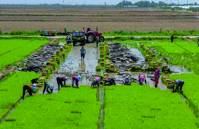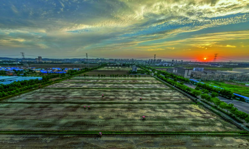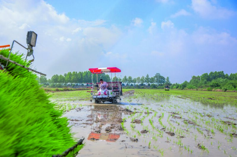 正值芒種時(shí)節(jié),淮南農(nóng)場(chǎng)的插秧作業(yè)正如火如荼地展開(kāi)。一臺(tái)臺(tái)插秧機(jī)在廣闊的農(nóng)田里來(lái)回穿梭,將一株株嫩綠的秧苗精準(zhǔn)植入沃土;田埂上,農(nóng)民們俯身勞作,手法嫻熟地將秧苗逐一栽入土里。機(jī)械化與人工的完美協(xié)作,使得淮南農(nóng)場(chǎng)的插秧作業(yè)既高效又細(xì)膩。這既是一場(chǎng)與時(shí)間的賽跑,也是傳統(tǒng)與現(xiàn)代農(nóng)業(yè)的和諧共鳴。