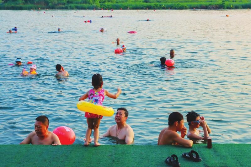 位于淮南市大通區(qū)九龍崗的“九龍池”,在盛夏酷暑中成為市民的避暑天堂。每到傍晚,男女老少在水中暢游、嬉戲,盡情享受這份家門口的清涼饋贈。