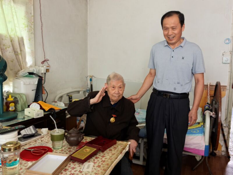 “葉老,家鄉(xiāng)人民都惦記著您!”慰問組組長彭華玉輕輕為老人整理徽章,詳細(xì)詢問其飲食起居,“您是國家的功臣,更是咱八公山的驕傲,一定要好好保重身體!比~有余的女兒接過慰問品,眼眶泛紅:“父親常念叨家鄉(xiāng),這枚紀(jì)念章送到他心坎上了,謝謝家鄉(xiāng)人民一直記著他!