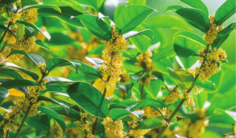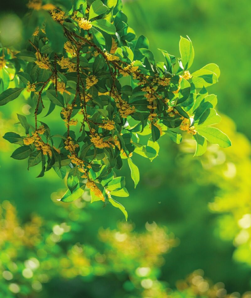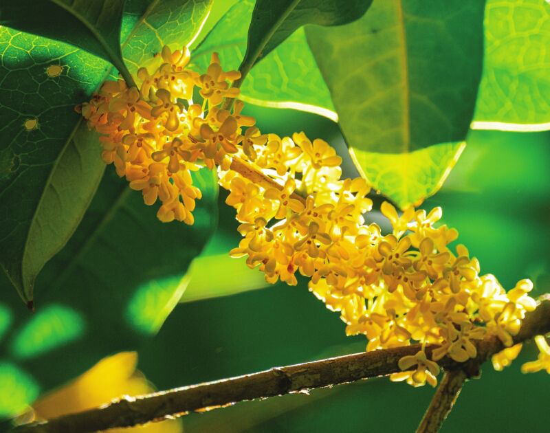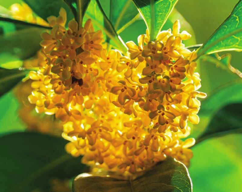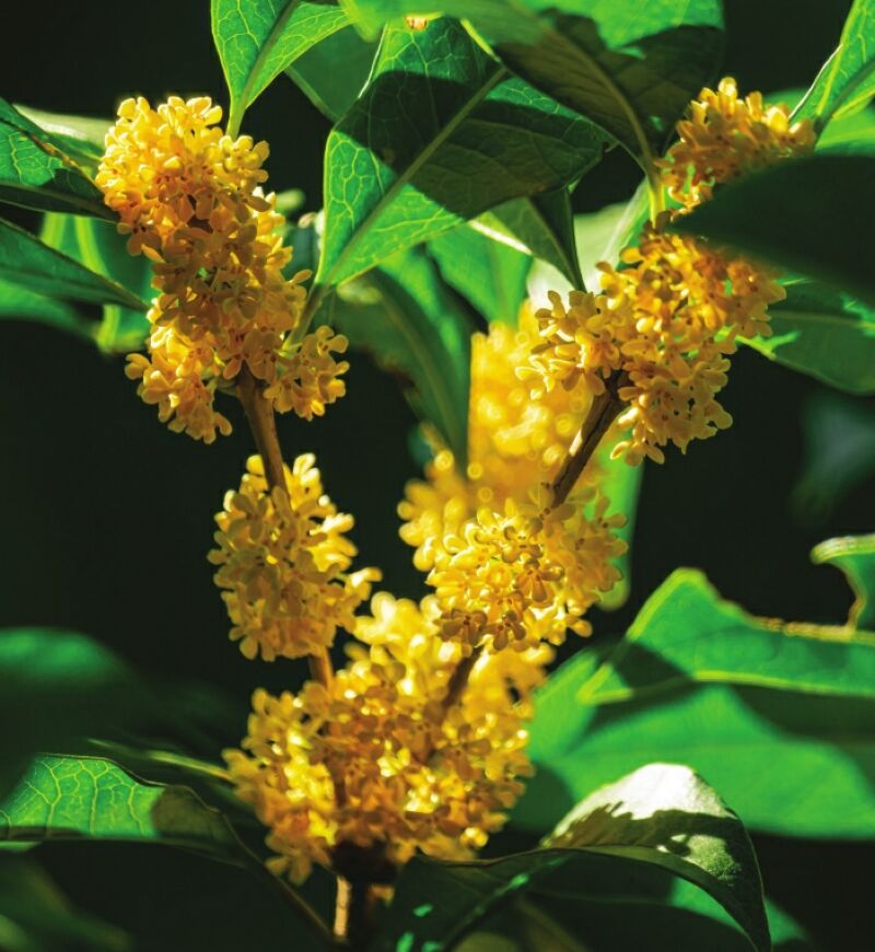 淮南的秋分“花代”——桂花又名木樨,是木樨科木樨屬常綠喬木或灌木。桂花成簇綴于綠葉之間,花瓣僅米粒大小,卻薄如蟬翼,在陽光下呈現(xiàn)出碎金質(zhì)感。桂花香氣穿透力強(qiáng),彌漫在秋日空氣中,能夠香飄十里;茨显灾补饦錃v史悠久,北宋樂史《太平御覽·木部》引東漢王逸《楚辭章句》:“漢淮南王安,好道,感八公,共登山攀桂樹。安作詩曰:攀桂樹兮聊淹留!眲菜骷础墩须[士》,詩中吟詠了八公山幽谷中的桂花。唐代詩人李白癡迷淮南桂,兩次來淮南,四次賦詩贊淮南桂樹、桂枝和丹桂。如今淮南遍植桂樹,媒體報(bào)道過的秋分賞桂勝地有八公山、舜耕山風(fēng)景區(qū)、壽縣新城區(qū)、焦崗湖、大通濕地公園、龍湖公園、人民公園、老龍眼濕地,為此特將桂花確定為秋分時節(jié)的淮南代表性花卉。