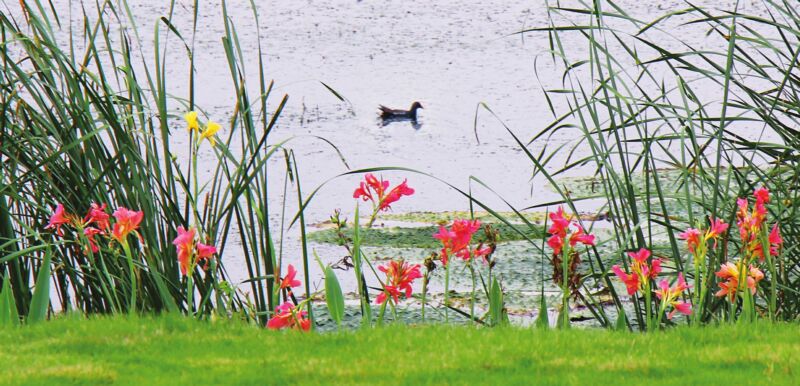 夏日的余溫在秋分時節(jié)悄然退去,山南如意公園池塘岸邊的美人蕉卻依舊熱烈綻放,仿佛未曾經(jīng)歷酷暑的煎熬。它們挺立水畔,紅艷如炬,映著粼粼波光,分外奪目,為漸涼的秋色添上一筆濃烈的詩意。