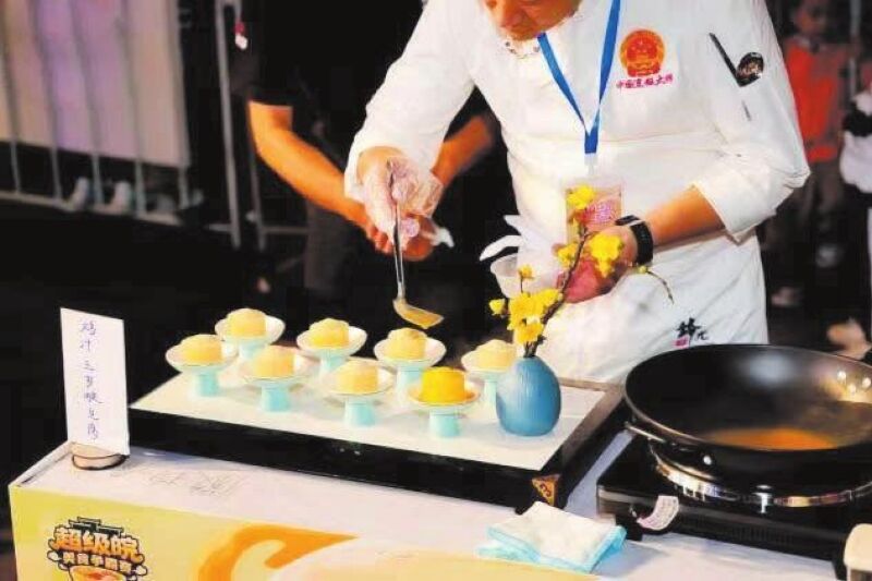 比賽現(xiàn)場(chǎng)堪稱美食與文化的雙重盛宴:徽揚(yáng)酒家的“雞汁玉羅釀豆腐”,以三十年老字號(hào)功底演繹“鮮”之精髓,嫩豆腐裹著蝦仁與雞肉的鮮香,澆上滾燙雞汁瞬間香氣撲鼻;凌云山莊的“淝水之戰(zhàn)”,將淮河淝王魚與八公山豆腐同鍋燜煮,食客在品味鮮美時(shí)仿佛重溫古戰(zhàn)場(chǎng)風(fēng)云;御景宴的“蜜汁桂花排骨”甜而不膩;永益酒店的“辣炒走地雞”辣得夠味;青山園徽姑娘農(nóng)家樂的“紅燒藤箕雞”盡顯原生態(tài)食材魅力;天源樓魚館的“夾心豆腐”則把淮河鮮韻鎖于方寸之間。