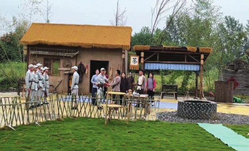 “砰砰砰……”“轟轟轟……”活動(dòng)當(dāng)天,在焦崗湖影視城新建的《淮南烽火》實(shí)景劇場(chǎng)內(nèi),突然“槍聲大作”“水炮沖天”……這是影視城升級(jí)后“大型實(shí)景交互式沉浸游”的開幕名場(chǎng)面,吸引眾多游客觀看。焦崗湖影視城依托現(xiàn)有資源,以“一出好戲”為主題,構(gòu)建“演藝體驗(yàn)+沉浸式互動(dòng)+影視片場(chǎng)+氛圍商業(yè)”融合業(yè)態(tài),形成“游購(gòu)?qiáng)食宰⌒小比芈糜紊鷳B(tài),面向全齡段客群提供沉浸式休閑體驗(yàn)。