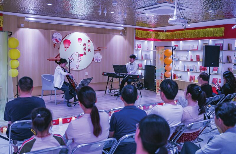 近日,淮南新華書(shū)店人民公園店舉行“中秋夜・書(shū)香音樂(lè)會(huì)”;靡羰覂(nèi)樂(lè)工作室給大家?guī)?lái)了14首古典音樂(lè)經(jīng)典曲目,鋼琴聲如月光般溫柔流淌,大提琴的低吟似故鄉(xiāng)河畔的晚風(fēng)。現(xiàn)場(chǎng)的讀者或閉目靜聽(tīng),或跟著節(jié)奏輕晃指尖,人們舉著手機(jī)記錄這抹月色與樂(lè)聲交織的美好;顒(dòng)既傳遞了團(tuán)圓暖意,也讓書(shū)香與樂(lè)韻交融出獨(dú)特魅力。