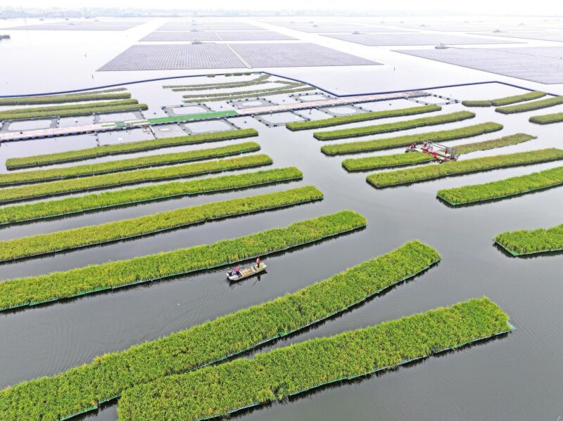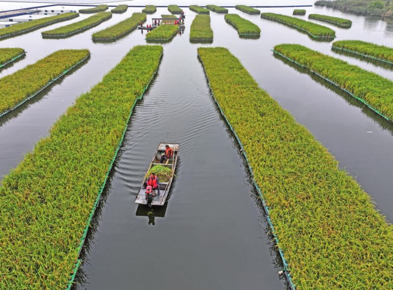 近日,安徽省淮南市鳳臺縣顧橋鎮(zhèn)采煤沉陷區(qū)50畝漂浮式水稻迎來豐收。當(dāng)?shù)胤e極探索采煤沉陷區(qū)綜合治理開發(fā)利用,在采煤沉陷區(qū)推行水面漂浮水稻種植、水下網(wǎng)箱養(yǎng)魚、水上光伏電站等多種發(fā)展模式,科學(xué)利用好采煤沉陷區(qū)。