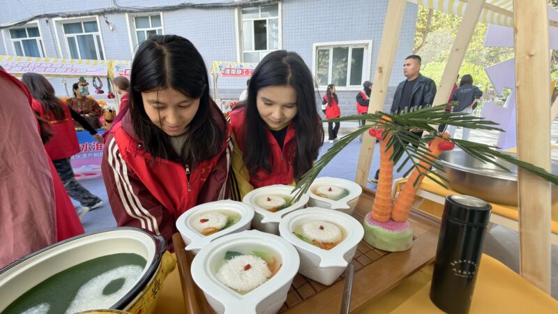 “學(xué)校從沒這么熱鬧過!原來豆腐能變成會(huì)開花的羹湯,皮藝上的花紋要經(jīng)過上千次敲打。”該院音樂教育專業(yè)大一新生麥迪娜木·吾拉依木在各個(gè)展臺(tái)間流連忘返,其表示雖然兩地相距遙遠(yuǎn),但通過這些精美的手工藝品,她仿佛觸摸到了淮南的文化脈搏。