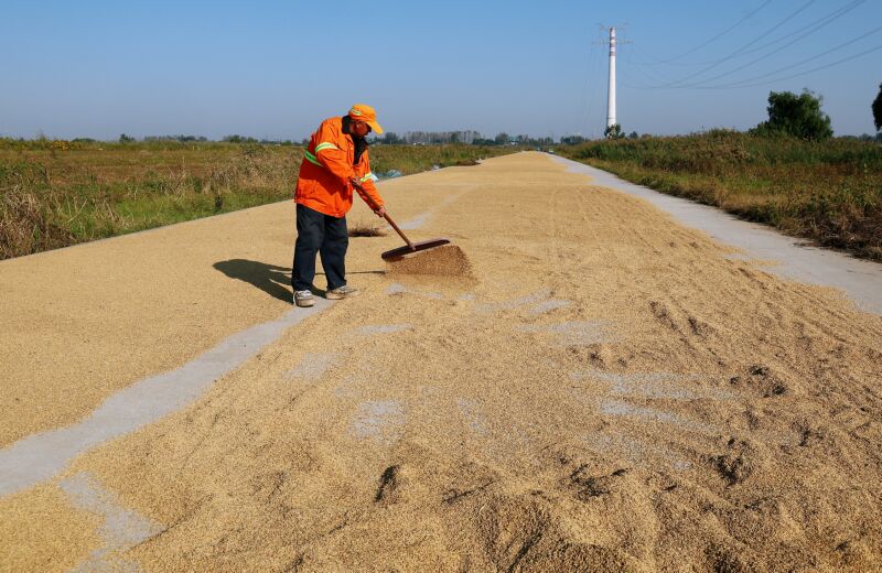 10月23日,淮南經(jīng)開(kāi)區(qū)種糧大戶胡德月將已收獲上來(lái)的30萬(wàn)斤稻谷,在洛河灣地封閉路段進(jìn)行攤曬。連日秋雨過(guò)后,我市農(nóng)民抓住當(dāng)前晴好天氣,采取多種方式,抓緊搶收搶烘搶曬糧食。