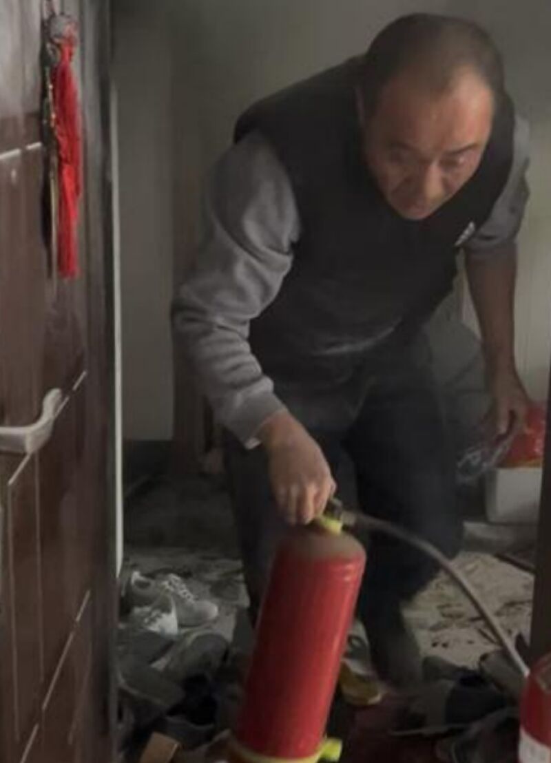一個滅火器很快耗盡,接著第二個也用完了;饎萑栽诼,屋內(nèi)不斷傳出爆炸聲,高溫炙烤下,劉鵬遠(yuǎn)的衣服沾滿灰燼,濃煙嗆得他劇烈咳嗽。匆匆趕來的妻子看著丈夫狼狽的樣子,心疼地勸阻:“太危險了,等消防隊吧!”