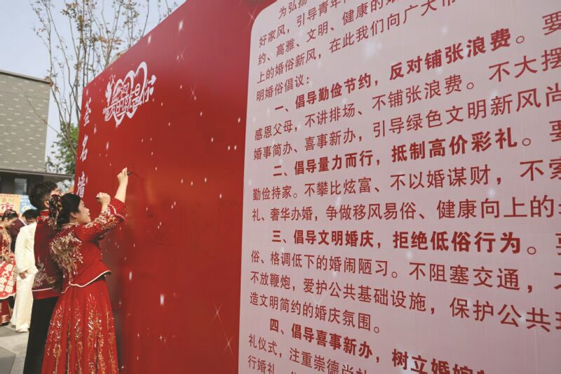 11月1日上午,在春申里文旅街區(qū),一場由市民政局、市婦聯(lián)主辦,市委宣傳部、市委社工部、市總工會、團市委、淮南高新區(qū)協(xié)辦,市新聞傳媒中心承辦的集體婚禮浪漫舉行。12對新人身著傳統(tǒng)禮服,在親友與社會各界的見證下,共許白首之約,共同鐫刻同心永結(jié)的幸福時刻。整場儀式以楚文化的典雅氣韻為基調(diào),融匯淮河文明的包容精神,倡導(dǎo)“文明簡約、傳承文化、家國一體”的婚禮新風。