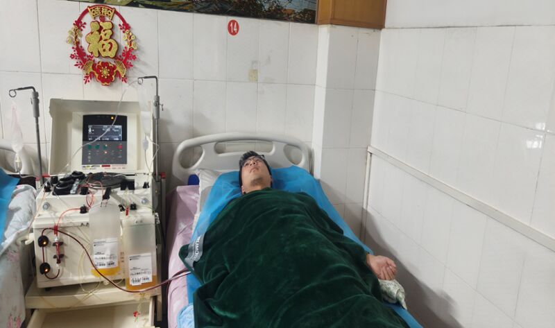 淮南聯(lián)合大學(xué)醫(yī)學(xué)院學(xué)生張東躍捐獻(xiàn)血小板救助患者(圖片由淮南市新時(shí)代志愿者聯(lián)合會(huì)提供)