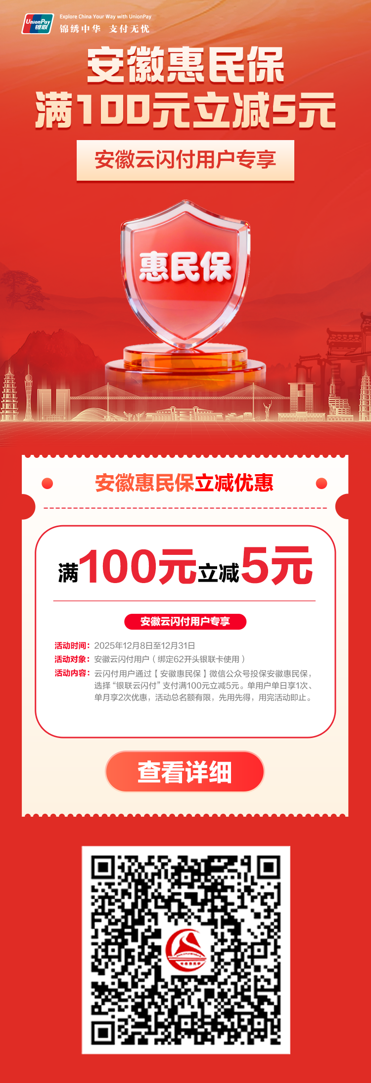 安徽惠民保滿100元立減5元!云閃付專享福利來襲!
