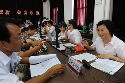8月21日至22日,淮南市公積金中心工作人員放棄雙休日,走進社區(qū),為居民辦理住房公積金貸款,并回答居民們的各項提問。圖為工作人員正在供電社區(qū)回答居民的問題。
