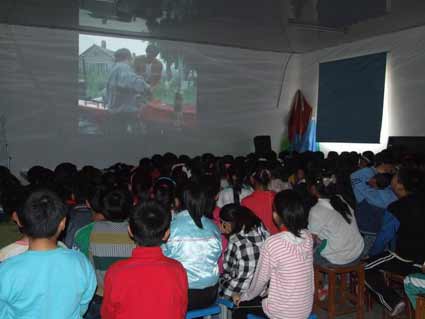 淮南交警支隊(duì)民警利用課余時(shí)間請(qǐng)小學(xué)生看電影,把交通安全宣傳送進(jìn)課堂,這種寓教于樂(lè)的形式贏得師生的一致好評(píng)。圖為5月6日下午,潘集區(qū)第四小學(xué)三(2)班的學(xué)生在看交通安全宣傳電影。
