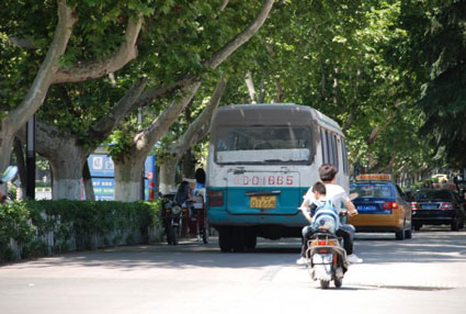 洞山中路一些路口人行道竟成一些中巴和出租車司機躲避電子警察的“便捷通道”