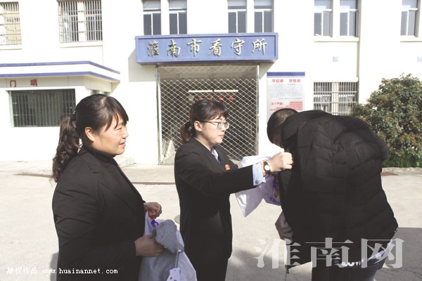 11月4日上午9時,在淮南市看守所門口,幾個人手里拿著全新的衣物等待著。她們不是誰的親戚,而是田家庵區(qū)法院少年法庭的法官們,正在等待因盜竊入獄,當(dāng)日刑滿釋放的小龍。她們到此正是為了迎接他的“新生”,同時也送上她們的愛心。