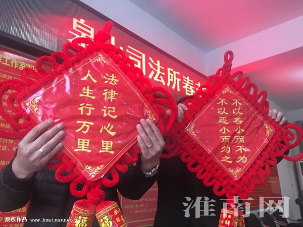 1月24日下午,在田家庵區(qū)泉山街道,即將期滿解除社區(qū)矯正的劉某收到了一個(gè)紅通通的中國(guó)結(jié),上面印著“人生行萬(wàn)里,法律記心里”新春寄語(yǔ)。劉某看著紅通通的中國(guó)結(jié),緊緊握著泉山司法所工作人員的手,高興又激動(dòng)。