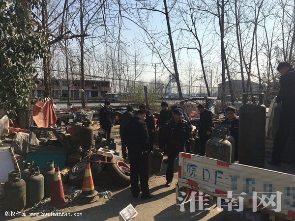 日前,曹庵派出所民警在開(kāi)展“百日除患”工作中摸排出曹庵鎮(zhèn)孤堆街道周邊有多家非法液化氣充裝作坊,這些非法充裝作坊位于該街道商品市場(chǎng),周?chē)窬颖椴、人口密集,存在極大安全隱患。了解到這一情況,民警多次實(shí)地暗訪(fǎng),確定了上述非法作坊的位置、規(guī)模、數(shù)量。隨后,山南新區(qū)公安分局組織警力會(huì)同田家庵區(qū)安監(jiān)局、曹庵鎮(zhèn)鎮(zhèn)政府等多部門(mén)展開(kāi)聯(lián)合執(zhí)法行動(dòng)。3月8日上午9時(shí),執(zhí)法人員依法對(duì)曹庵鎮(zhèn)孤堆街道附近5處非法存放、銷(xiāo)售液化氣點(diǎn)進(jìn)行了查處,現(xiàn)場(chǎng)查扣各種類(lèi)型液化氣罐100余只,并對(duì)5處非法儲(chǔ)存、銷(xiāo)售的充氣作坊依法予以取締。同時(shí),民警也向有關(guān)部門(mén)報(bào)告,應(yīng)設(shè)安全合法的供應(yīng)點(diǎn),解決群眾生活物資。