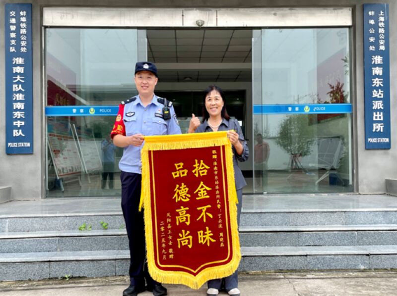 (記者 查嘉琪 攝影報(bào)道)日前,一面印著“拾金不昧品德高尚”的錦旗送到了淮南東站派出所。市民王女士專(zhuān)程前來(lái),向幫她找回遺失手提包的民警表達(dá)謝意。