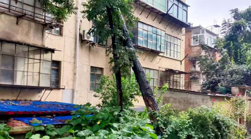 接到反映后,市政園林管理處迅速響應,聯(lián)合土壩孜街道建井社區(qū)、東華物業(yè)公司赴現(xiàn)場勘查。經(jīng)核實,該香椿樹胸徑約40厘米,高約18米,因長期缺乏管護,傾斜程度逐步加重,對周邊居民生命財產(chǎn)安全構(gòu)成威脅。