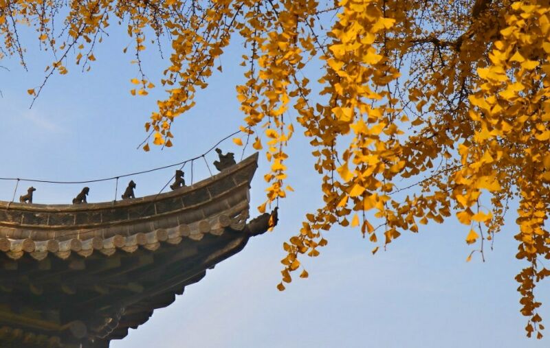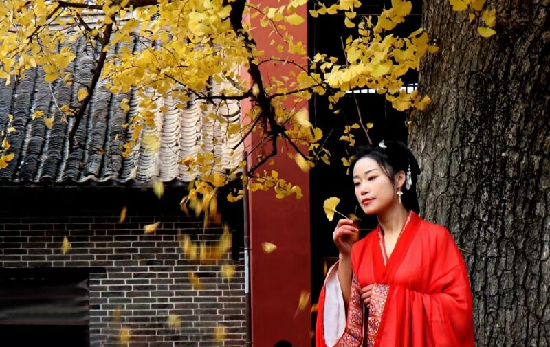壽州古城報恩寺內(nèi)的銀杏樹,據(jù)今已有1300多年歷史,歷經(jīng)歲月滄桑依然枝繁葉茂。時入冬季,綠葉換上金黃外衣,微風(fēng)拂過,葉片緩緩飄落,宛如一串串金色的詩行在空中搖曳,引得游客紛紛前來拍照打卡。