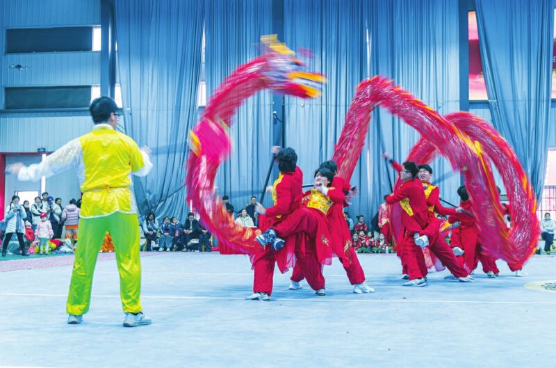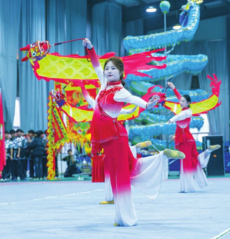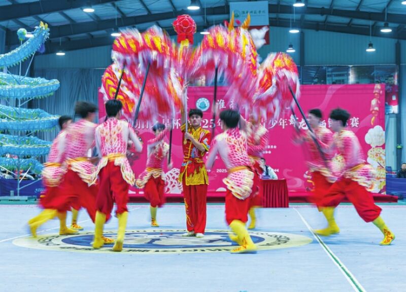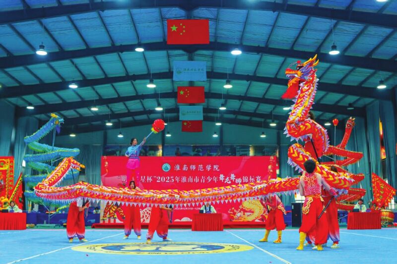 12月20日下午,淮南師范學(xué)院小球館內(nèi)熱鬧非凡,金黃的長龍盤旋升空,紅鬃醒獅踩點(diǎn)跳躍,一群又一群青少年手擎道具默契配合,一招一式剛勁靈動(dòng),贏得觀眾陣陣喝彩。