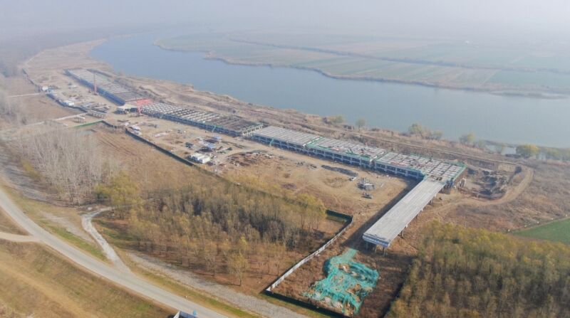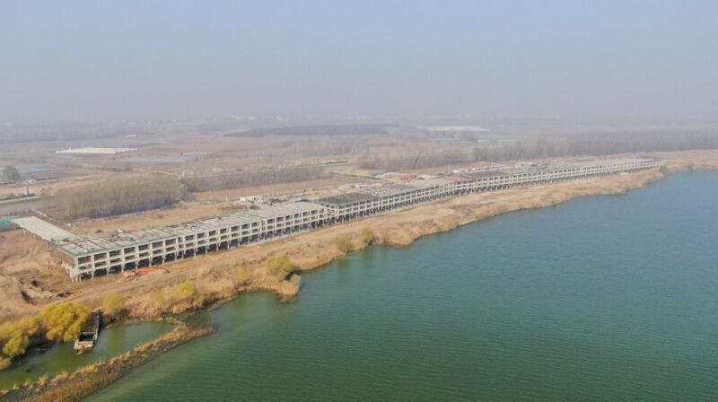 圖為12月21日鳳臺新港綜合碼頭建設(shè)現(xiàn)場。