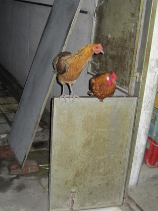 在田家庵電廠小區(qū)里有兩只可愛的雞,每天晚上,過往的居民們都會(huì)看見它們站在高處,昂著頭望著來往的人們,像兩個(gè)看門的將軍,讓人忍俊不禁。