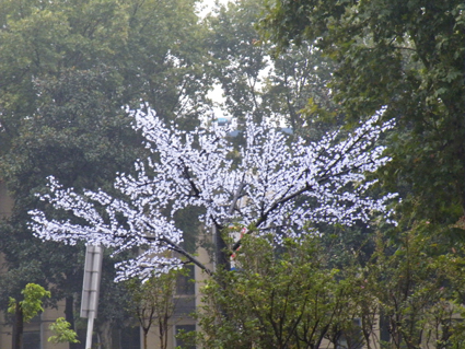 圖為:裝扮在綠樹叢中的景觀樹。
