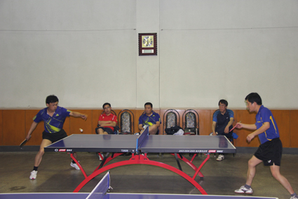 11月8日,淮南日?qǐng)?bào)社的采編人員走進(jìn)本市企事業(yè)單位,與企事業(yè)單位員工一起,采取形式多樣的文體活動(dòng),歡度中國第十一個(gè)記者節(jié)。圖為淮南日?qǐng)?bào)社采編人員與淮南市凱盛重工有限公司員工舉行乒乓球友誼賽。