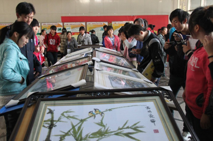 據(jù)悉,這些作品均出自該校繡藝創(chuàng)業(yè)小組組員之手,這一幅幅作品在展出后,將用于與外國學(xué)校交流和助學(xué)貧困生。