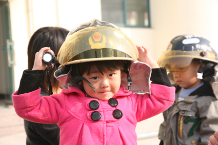 在參觀消防車輛器材裝備過程中,消防戰(zhàn)士介紹了各種消防車輛、器材裝備的作用和性能,并現(xiàn)場演示了空氣呼吸器和戰(zhàn)斗服等裝備的使用。好奇的孩子們不時向講解員提出問題,并爭相要求親手摸一摸這些器材。消防官兵對小朋友們提出的問題都一一給予回答,還給小朋友們戴上消防頭盔和面罩,當(dāng)了一回“小小消防員”。