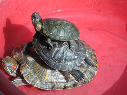 圖:三只烏龜正在享受著“疊羅漢”的樂趣。