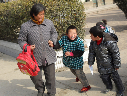 圖:放學(xué)了,奶奶拉著孫子的手回家。