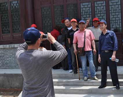 在簡短的啟動儀式之后,殘疾人被分成兩支隊伍,分別游覽八公山和焦崗湖風景區(qū)。記者隨同一隊人馬前往焦崗湖風景區(qū)。巴士沿著山南新區(qū)寬敞的道路駛向高速公路,山南新區(qū)的建設讓大家感到很興奮,許多殘疾人朋友發(fā)出了贊嘆之聲。在高速路上行駛大半個小時,旅游隊伍開進了著名的焦崗湖影視城。影視城里的古舊的房屋,仿古的道路充滿了歷史的氣息,殘疾人朋友們很感興趣,大家圍在老式吉普車、“軍械庫”等處,紛紛拍照留念。五月的陽光灑在殘疾人朋友的笑臉上,記者看到的是滿意與知足。游覽完影視城,大家又去興致勃勃的欣賞了焦崗湖的美景,涼風過處,大自然的饋贈讓人心曠神怡。