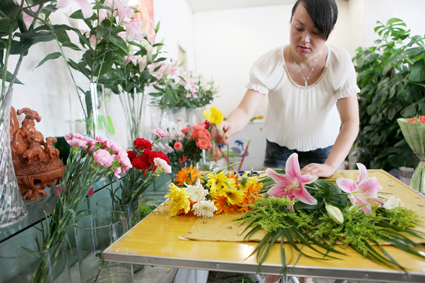 8月14日,農(nóng)歷七月十五,是一年一度的“中元節(jié)”,中元節(jié)與除夕、清明節(jié)、重陽節(jié)三節(jié),都是中國傳統(tǒng)節(jié)日里祭祖的四大節(jié)日。圖為陳洞路一家花店的工作人員正在忙準(zhǔn)備祭祖用的菊花。據(jù)了解,越來越多的消費者選擇鮮花祭祖,文明祭祖的意識在群眾中逐漸增強。