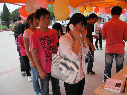 9月10日中午,安徽理工大學(xué)化工學(xué)院的學(xué)生們?cè)谛@里設(shè)置了祝福教師的平臺(tái),學(xué)子們可以通過一部免費(fèi)電話給自己的老師送上最真摯的祝福,也可以在氣球和橫幅上寫下想對(duì)老師說的話。