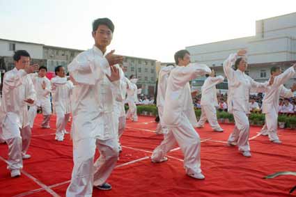為喜迎國慶,近日,國投新集一礦開辦了陳式太極培訓(xùn)班,培訓(xùn)班教練由太極拳大師馬虹的入室弟子、陳氏太極拳第十二代傳人閆其余擔任,他利用業(yè)余時間對礦區(qū)太極拳愛好者進行集體免費培訓(xùn),進一步豐富廣大職工的業(yè)余文化生活,促進和諧礦區(qū)建設(shè)。圖為太極拳愛好者在展示技藝。