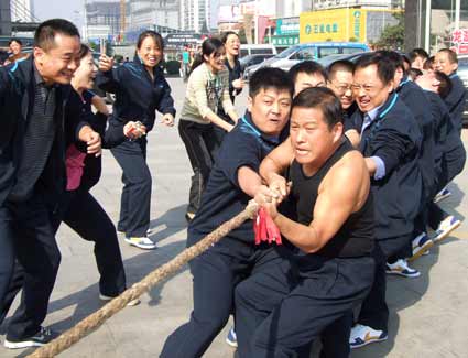 9月25日,農(nóng)行淮南分行在辦公大樓門前舉辦了“慶十一”職工健身運(yùn)動(dòng)會(huì)。喜迎偉大祖國62歲華誕。此次運(yùn)動(dòng)會(huì)共設(shè)拔河、跳繩、乒乓球三個(gè)項(xiàng)目,每個(gè)項(xiàng)目取前三名進(jìn)行獎(jiǎng)勵(lì),共200余人參加了運(yùn)動(dòng)會(huì)。