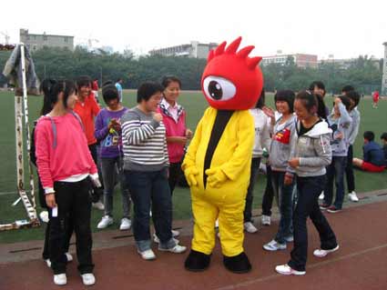 經(jīng)過一番詢問后記者得知,原來由于這個周末正值該校各個學生社團集中開展一年一度的招新活動,該校成立的安徽高校首個微博協(xié)會別出心裁,在招新宣傳過程中與淮南新浪樂居合作,首次把深受90后大學生喜愛的新浪微博吉祥物“小浪 人”請進了大學校園。而“小浪人”每到一處,都能制造陣陣笑聲(如圖)。