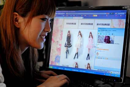 10月18日,淮南90后大學(xué)生任靜在自己的網(wǎng)店上正與客戶交流。1991年10月出生的任靜今年畢業(yè)于湖北武漢警官職業(yè)學(xué)院,早在2008年8月在武漢上大學(xué)期間,對公主服飾有著特殊愛好的她在商場里總是選擇不到價廉物美的公主式樣的服飾!白约涸O(shè)計服裝自己開網(wǎng)店,我的衣服我做主!币粋大膽的創(chuàng)業(yè)想法在這個敢闖敢干的90后小女生腦海中形成。于是,她借了4000元開起了網(wǎng)店,3500元用于買筆記本電腦,另外500元用于網(wǎng)店周轉(zhuǎn)。