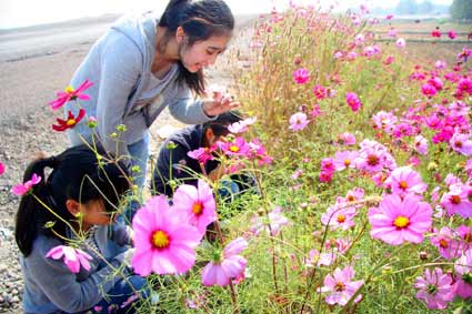 近日,在合徐高速九龍崗段連接線6公里處往南新修的路段上,出現(xiàn)了一種類似格;ǖ男』ǎ浾甙l(fā)現(xiàn)無(wú)論從形狀還是顏色,這種花都與格桑花相似度極高!皫缀跻荒R粯印,有市民驚嘆。