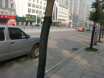 細(xì)心的市民會(huì)發(fā)現(xiàn),這幾天,廣場(chǎng)路兩邊的一些綠化樹的樹干上包裹了一層布狀的東西,原來(lái)這是為樹木過冬而穿上的新型“冬衣”。