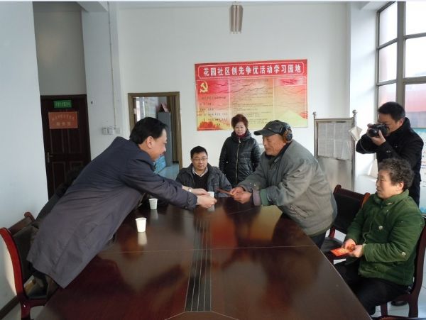 圖為花園社區(qū)群眾收到來(lái)自市房管局的慰問(wèn)金
