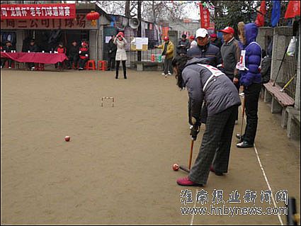 1月18日上午8點,天空還飄著絲絲冬雨,在中鐵十局三公司的門球場內,積聚了許多參賽隊伍,記者看到參賽隊員都是中老年人組成的,他們神采奕奕紛紛摩拳擦掌的欲與對方一決高下。隨著裁判的一聲鳴笛,門球比賽正式開始,場上比賽的運動員們步伐穩(wěn)健,擊球有力,時不時打出精彩的得分球,場外的觀眾不時傳來激動的喝彩聲。