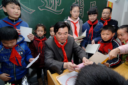 3月30日上午,中國硬筆書法協(xié)會主席、清華大學(xué)美術(shù)學(xué)院高研班教授張華慶,中國硬筆書法協(xié)會秘書長李冰等一行,來到少兒藝術(shù)之鄉(xiāng)淮南,進(jìn)行書法教育普及調(diào)研活動,鼓勵和培養(yǎng)更多的學(xué)生,來寫好漂漂亮亮的中國字,繼承和發(fā)揚(yáng)中國的傳統(tǒng)文化。圖為硬筆書法協(xié)會主席張華慶在田區(qū)16小學(xué)為學(xué)生們指導(dǎo)時的場景。