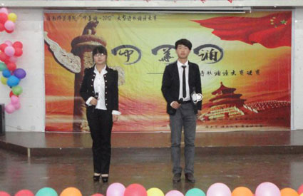 為迎接“世界讀書(shū)日”的到來(lái),4月23日晚,淮南師范學(xué)院在該院的教學(xué)樓報(bào)告廳內(nèi)舉辦了“誦心聲、誦經(jīng)典、誦中華”詩(shī)歌朗讀大賽;顒(dòng)現(xiàn)場(chǎng),參賽選手聲情并茂的朗讀,使得一首首經(jīng)典詩(shī)歌活力重燃。“我站在高山之巔,望黃河滾滾,奔向東南。驚濤澎湃,掀起萬(wàn)丈狂瀾……”大學(xué)生朗讀的《黃河頌》聲聲震撼、驚濤拍岸;“為什么我的眼里常含淚水?因?yàn)槲覍?duì)這土地愛(ài)得深沉”艾青的《我愛(ài)這土地》真切動(dòng)人、言盡情綿。當(dāng)晚,一首首經(jīng)典詩(shī)歌不斷回響在學(xué)子耳畔,令不少大學(xué)生深受感動(dòng),紛紛表示今后要少上網(wǎng)、多讀書(shū)。